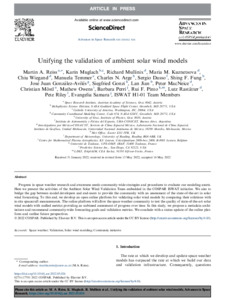 Reiss, M. A., Muglach, K., Mullinix, R., Kuznetsova, M. M., Wiegand, C., Temmer, M., Arge, C. N., Dasso, S., Fung, S. F., González-Avilés, J. J., Gonzi, S., Jian, L., MacNeice, P., Möstl, C., Owens, M. ORCID: https://orcid.org/0000-0003-2061-2453, Perri, B., Pinto, R. F., Rastätter, L., Riley, P. and Samara, E. (2023) Unifying the validation of ambient solar wind models. Advances in Space Research, 72 (12). pp. 5275-5286. ISSN 0273-1177 doi: 10.1016/j.asr.2022.05.026