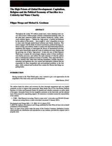 Menga, F. ORCID: https://orcid.org/0000-0001-5712-7748 and Goodman, M. K. ORCID: https://orcid.org/0000-0003-4861-029X (2022) The high priests of global development: capitalism, religion and the political economy of sacrifice in a celebrity‐led water charity. Development and Change, 53 (4). pp. 705-735. ISSN 0012-155X doi: 10.1111/dech.12723