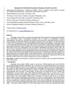 Senthilkumaran, S., Miller, S. W., Williams, H. F., Savania, R., Thirumalaikolundusubramanian, P., Patel, K. and Vaiyapuri, S. ORCID: https://orcid.org/0000-0002-6006-6517 (2022) Development of Wunderlich Syndrome following a Russell’s viper bite. Toxicon, 215. pp. 11-16. ISSN 0041-0101 doi: 10.1016/j.toxicon.2022.06.004