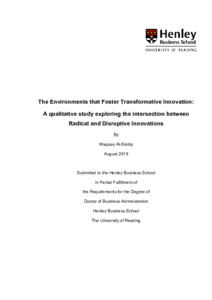 Al-Siddiq, W. (2019) The Environments that Foster Transformative Innovation: A qualitative study exploring the intersection between Radical and Disruptive Innovations. DBA thesis, Henley Business School, University of Reading.