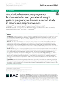 Association between pre-pregnancy body mass index and gestational weight gain on pregnancy outcomes: a cohort study in Indonesian pregnant women.
