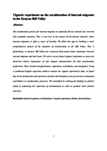 Vignette experiment on the acculturation of internal migrants in the Kenyan Rift Valley.