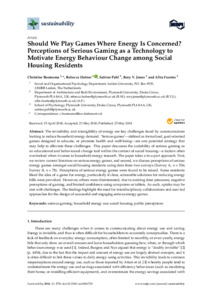 The invisibility and intangibility of energy are key challenges faced by communicators looking to reduce household energy demand. ‘Serious games’—defined as formalized, goal-oriented games designed to educate, or promote health and well-being—are one potential strategy that may help to alleviate these challenges. This paper discusses the suitability of serious gaming as an educational and behavioural change tool within the context of social housing—a faction often overlooked when it comes to household energy research. The paper takes a two-part approach. First, we review current literature on serious energy games, and second, we discuss perceptions of serious energy games amongst social housing residents using data from two surveys (Survey A, n = 536; Survey B, n = 78). Perceptions of serious energy games were found to be mixed. Some residents liked the idea of a game for energy, particularly if clear, actionable solutions for reducing energy bills were provided. However, others were disinterested, due to existing time pressures, negative perceptions of gaming, and limited confidence using computers or tablets. As such, uptake may be met with challenges. The findings highlight the need for interdisciplinary collaborations and user-led approaches for the design of successful and engaging serious energy games.