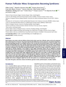 Smith, G., Manzano-Marín, A. ORCID: https://orcid.org/0000-0002-0707-9052, Reyes-Prieto, M., Antunes, C. S. R., Ashworth, V., Goselle, O. N., Jan, A. A. A., Moya, A., Latorre, A., Perotti, M. A. ORCID: https://orcid.org/0000-0002-3769-7126 and Braig, H. R. (2022) Human follicular mites: ectoparasites becoming symbionts. Molecular Biology and Evolution, 39 (6). msac125. ISSN 1537-1719 doi: 10.1093/molbev/msac125