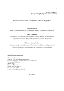 Re-examining green revolution diffusion and factor/input markets in Bangladesh after market liberalization.
