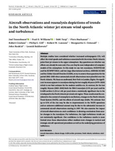 Multiple studies have considered whether increased anthropogenic CO2 will affect the wind speeds and turbulence associated with the winter North Atlantic polar front jet stream in the upper atmosphere. Key questions are whether any effects can already be seen and, if so, can they be seen independent of computer models of the atmosphere. In this study we use two reanalyses, NCEP/NCAR and the ECMWF ERA5, and two large observational archives, AMDAR/ACARS and the Global Aircraft Data Set (GADS), to try to answer these questions for the period 2002-2020 when automated aircraft observations were plentiful over the North Atlantic. We focus on eastbound, New York to London, flights. No significant increase appears in reanalyses during the last roughly 40 years (1979-2020) which is our best estimate for the modern satellite era. In contrast, for the last roughly 20 years (2002-2020) both the ERA5 reanalysis (2.5% per year) and the GADS archive (1.2% to 1.4% per year) show a statistically significant rise in the wind speed in the North Atlantic jet streak exit region. These results must be considered in the context of atmospheric oscillations, changes to the North Atlantic Track System (NATS), and the effects of aircraft step climbs. We estimate that up to 0.5% of the rise may be due to improvements in the NATS operations and an unknown additional amount may be due to the substantial increase in automated aircraft observations starting in 1997. We also examine the impact of aircraft observations on one’s confidence in drawing conclusions from secular changes in the reanalyses. For turbulence, the Light turbulence trends are not statistically significant. Our confidence in the turbulence results is more limited since these observations reflect medium-term changes in tactical and strategic aircraft operational procedures as well as the underlying prevalence of turbulence.