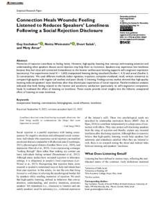Connection heals wounds: feeling listened to reduces speakers’ loneliness following a social rejection disclosure