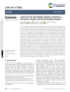 Label-free 1D microfluidic dipstick counting of microbial colonies and bacteriophage plaques.