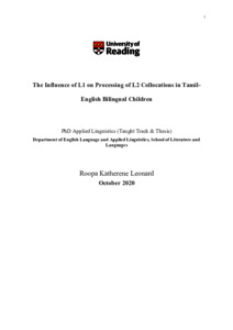 Leonard, R. K. (2021) The influence of L1 on processing of L2 collocations in Tamil-English bilingual children. PhD thesis, University of Reading. doi: 10.48683/1926.00106016