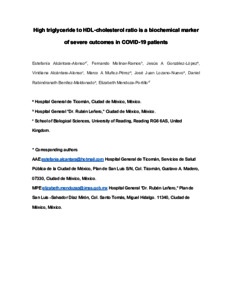 Alcántara-Alonso, E. ORCID: https://orcid.org/0000-0002-2481-3298, Molinar-Ramos, F., González-López, J. A., Alcantara Alonso, V. ORCID: https://orcid.org/0000-0002-9782-2398, Muñoz-Pérez, M. A., Lozano-Nuevo, J. J., Benítez-Maldonado, D. R. and Mendoza-Portillo, E. (2021) High triglyceride to HDL-cholesterol ratio as a biochemical marker of severe outcomes in COVID-19 patients. Clinical Nutrition ESPEN, 44. pp. 437-444. ISSN 2405-4577 doi: 10.1016/j.clnesp.2021.04.020