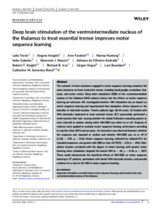 | Uncontrolled Keywords | RESEARCH ARTICLE, RESEARCH ARTICLES, deep brain stimulation, essential tremor, motor sequence learning, serial reaction time task, ventrointermediate nucleus of the thalamus |