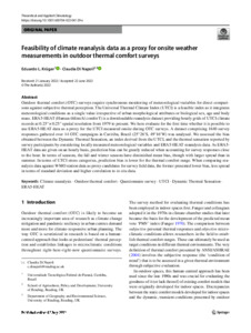 Krüger, E. L. ORCID: https://orcid.org/0000-0003-2895-5530 and Di Napoli, C. ORCID: https://orcid.org/0000-0002-4901-3641 (2022) Feasibility of climate reanalysis data as a proxy for onsite weather measurements in outdoor thermal comfort surveys. Theoretical and Applied Climatology, 149. pp. 1645-1658. ISSN 1434-4483 doi: 10.1007/s00704-022-04129-x