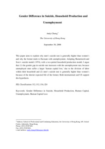This paper aims to explain why men’s suicide rate is generally higher than women’s and why the former tends to fluctuate with unemployment. Adopting Hamermesh and Soss’s suicide model (1974), with a two-period household production model, I argue that (1) the gender gap in suicide rate increases with the unemployment rate, because unemployed men suffer a larger ‘human capital loss,’ due to the division of labor within their household and (2) men’s suicide rate is generally higher than women’s because of the shorter expected life of the former. Both international and US evidences support this hypothesis.