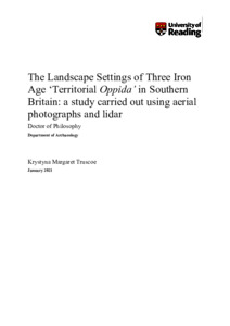 Truscoe, K. M. (2021) The landscape settings of three Iron Age ‘Territorial Oppida’in Southern Britain: a study carried out using aerial photographs and lidar. PhD thesis, University of Reading. doi: 10.48683/1926.00106246
