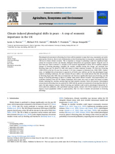 Climate induced phenological shifts in pears – a crop of economic importance in the UK
