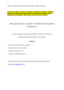 Guo, J., Hu, X., Elliot, A., Marsh, H. W., Murayama, K., Basarkod, G., Parker, P. D. and Dicke, T. (2023) Mastery-approach goals: a large-scale cross-cultural analysis of antecedents and consequences. Journal of Personality and Social Psychology, 125 (2). pp. 397-420. ISSN 1939-1315 doi: 10.1037/pspp0000436