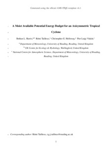 Harris, B. L., Tailleux, R. ORCID: https://orcid.org/0000-0001-8998-9107, Holloway, C. E. ORCID: https://orcid.org/0000-0001-9903-8989 and Vidale, P. L. ORCID: https://orcid.org/0000-0002-1800-8460 (2022) A moist available potential energy budget for an axisymmetric tropical cyclone. Journal of the Atmospheric Sciences, 79 (10). pp. 2493-2513. ISSN 1520-0469 doi: 10.1175/JAS-D-22-0040.1