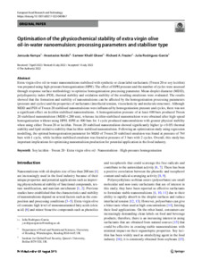 Optimisation of the physicochemical stability of extra virgin olive oil-in-water nanoemulsion: processing parameters and stabiliser type