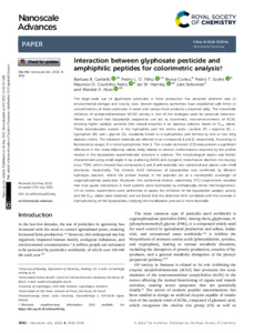 Interaction between glyphosate pesticide and amphiphilic peptides for colorimetric analysis