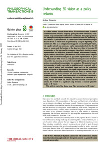 Glennerster, A. ORCID: https://orcid.org/0000-0002-8674-2763 (2023) Understanding 3D vision as a policy network. Philosophical Transactions of the Royal Society B-Biological Sciences, 378 (1869). ISSN 1471-2970 doi: 10.1098/rstb.2021.0448