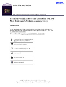 Goethe’s politics and political uses: nazi and anti-nazi readings of Des Epimenides Erwachen.