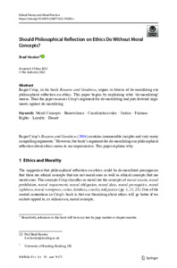 Hooker, B. (2024) Should philosophical reflection on ethics do without moral concepts? Ethical Theory and Moral Practice, 27. pp. 651-665. ISSN 1572-8447 doi: 10.1007/s10677-022-10303-x