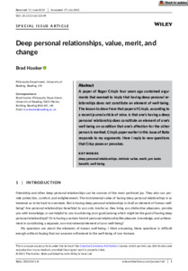 Hooker, B. (2022) Deep personal relationships, value, merit, and change. Ratio, 35 (4). pp. 344-351. ISSN 0034-0006 doi: 10.1111/rati.12349