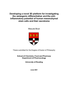 Bicer, M. (2021) Developing a novel 3D platform for investigating the osteogenic differentiation and the anti-inflammatory potential of human mesenchymal stem cells and their secretome. PhD thesis, University of Reading. doi: 10.48683/1926.00106616
