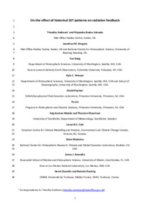 Andrews, T., Bodas-Salcedo, A., Gregory, J. M. ORCID: https://orcid.org/0000-0003-1296-8644, Dong, Y., Armour, K. C., Paynter, D., Lin, P., Modak, A., Mauritsen, T., Cole, J. N. S., Medeiros, B., Benedict, J. J., Douville, H., Roehrig, R., Koshiro, T., Kawai, H., Ogura, T., Dufresne, J.-L., Allan, R. P. ORCID: https://orcid.org/0000-0003-0264-9447 and Liu, C. (2022) On the effect of historical SST patterns on radiative feedback. Journal of Geophysical Research, 127 (18). e2022JD036675. ISSN 0148-0227 doi: 10.1029/2022JD036675