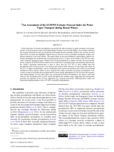 Lavers, D. A., Zsoter, E., Richardson, D. S. and Pappenberger, F. (2017) An assessment of the ECMWF extreme forecast index for water vapor transport during boreal winter. Weather and Forecasting, 32 (4). pp. 1667-1674. ISSN 0882-8156 doi: 10.1175/WAF-D-17-0073.1