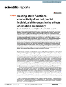 Resting-state functional connectivity does not predict individual differences in the effects of emotion on memory.