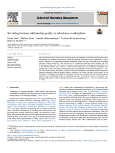 Hani, U., Akter, S., Wickramasinghe, A., Kattiyapornpong, U. and Mariani, M. ORCID: https://orcid.org/0000-0002-7916-2576 (2022) Revisiting business relationship quality in subsistence marketplaces. Industrial Marketing Management, 106. pp. 197-218. ISSN 0019-8501 doi: 10.1016/j.indmarman.2022.08.011
