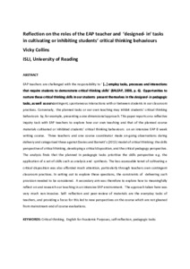 | Uncontrolled Keywords | Critical thinking, English for Academic Purposes, self-reflection, pedagogic tasks |