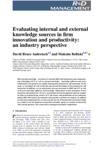 Audretsch, D. B. and Belitski, M. (2023) Evaluating internal and external knowledge sources in firm innovation and productivity: an industry perspective. R&D Management, 53 (1). pp. 168-192. ISSN 1467-9310 doi: 10.1111/radm.12556