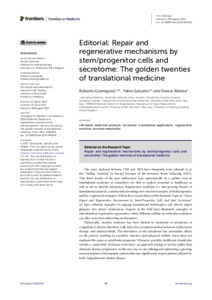 Gramignoli, R., Sallustio, F. and Widera, D. ORCID: https://orcid.org/0000-0003-1686-130X, eds. (2022) Tissue repair and regenerative mechanisms by stem/progenitor cells and their secretome, volume II. Frontiers in Medicine. Frontiers. doi: 10.3389/fmed.2022.901003