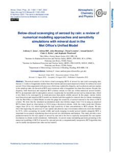 Below-cloud scavenging of aerosol by rain: a review of numerical modelling approaches and sensitivity simulations with mineral dust in the Met Office's Unified Model.