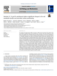 Brown, R. W., Chadwick, D. R., Bending, G. D., Collins, C. D., Whelton, H. L., Daulton, E., Covington, J. A., Bull, I. D. and Jones, D. L. (2022) Nutrient (C, N and P) enrichment induces significant changes in the soil metabolite profile and microbial carbon partitioning. Soil Biology and Biochemistry, 172. 108779. ISSN 0038-0717 doi: 10.1016/j.soilbio.2022.108779