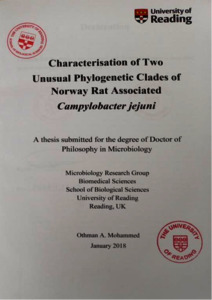 Mohammed, O. A. (2022) Characterisation of two unusual phylogenetic clades of Norway rat associated Campylobacter jejuni. PhD thesis, University of Reading. doi: 10.48683/1926.00107299