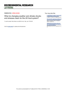 In light of the publication of Henry Dimbleby’s National Food Strategy (www.nationalfoodstrategy. org/) and the COP26 climate meeting in Glasgow, it is timely to consider the impacts of weather and climate extremes on the UK food system. Climate change-driven changes in extreme weather events are one of the highest-risk future shocks to the UK food system [1], underlining the importance of preparedness across the food chain [2]. Here, we identify major knowledge gaps in the primary impacts of extreme weather and climate change across the UK’s food system, its functioning and their interactions to provide information to support adaptation and resilience planning. Research tends to focus on individual food system activities rather than taking a systematic approach [3, 4]. How- ever, strong evidence exists about the impacts of long- term climate trends and extremes [5] on primary food production [6]. The major knowledge gaps therefore concern post-primary production dimensions [4], notably food system activities between the ‘farm-gate’ and consumption—which are the core focus of this paper (supplementary material S1 available online at stacks.iop.org/ERL/17/051001/mmedia). These constitute major economic and social dimensions but are often the ‘missing middle’ in food system discus- sions. We use the UK food system as an illustrative case study, and consider both global and domestic risks and implications. We present methods, tools and frameworks for systemic analysis of climate impacts on food systems, consider the funding landscape, and highlight priorities for future research.