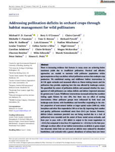 Garratt, M. P. D. ORCID: https://orcid.org/0000-0002-0196-6013, O'Connor, R. S., Carvell, C., Fountain, M. T., Breeze, T. D. ORCID: https://orcid.org/0000-0002-8929-8354, Pywell, R., Redhead, J. W., Kinneen, L. ORCID: https://orcid.org/0000-0001-5502-8113, Mitschunas, N., Truslove, L., Xavier e Silva, C., Jenner, N., Ashdown, C., Brittain, C., McKerchar, M., Butcher, C., Edwards, M., Nowakowski, M., Sutton, P. and Potts, S. G. ORCID: https://orcid.org/0000-0002-2045-980X (2023) Addressing pollination deficits in orchard crops through habitat management for wild pollinators. Ecological Applications, 33 (1). e2743. ISSN 1939-5582 doi: 10.1002/eap.2743