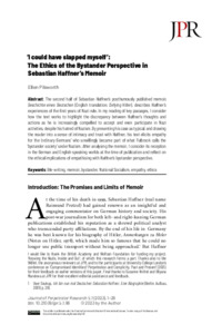 Pilsworth, E. ORCID: https://orcid.org/0000-0001-7379-0996 (2023) ‘I could have slapped myself’: the ethics of the bystander perspective in sebastian haffner’s memoir. Journal of Perpetrator Research, 5 (1). pp. 1-28. ISSN 2514-7897 doi: 10.21039/jpr.5.1.96
