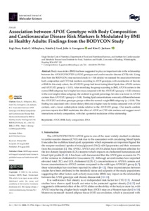 Ozen, E. ORCID: https://orcid.org/0000-0001-6203-7018, Mihaylova, R. G., Lord, N. J., Lovegrove, J. A. ORCID: https://orcid.org/0000-0001-7633-9455 and Jackson, K. G. ORCID: https://orcid.org/0000-0002-0070-3203 (2022) Association between APOE Genotype with Body Composition and Cardiovascular Disease Risk Markers Is Modulated by BMI in Healthy Adults: findings from the BODYCON Study. International Journal of Molecular Sciences, 23 (17). 9766. ISSN 1422-0067 doi: 10.3390/ijms23179766