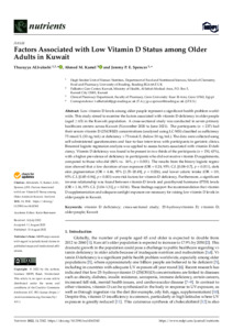 Factors associated with low vitamin D status among older adults in Kuwait.