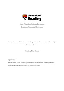 Nkobou, A. T. (2021) Contradictions in the political economy of large-scale land investments and human rights discourse in Tanzania. PhD thesis, University of Reading. doi: 10.48683/1926.00107598