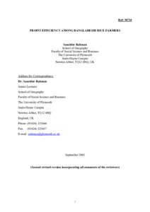 Profit efficiency among Bangladeshi rice farmers.