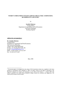 Women's employment in Bangladesh agriculture: composition, determinants and scope.