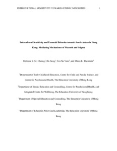 Intercultural sensitivity and prosocial behavior towards South Asians in Hong Kong: mediating mechanisms of warmth and stigma.