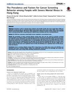 The prevalence and factors for cancer screening behavior among people with severe mental illness in Hong Kong.
