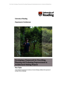 Taylor, P. (2021) Developing a framework for describing, planning and evaluating empowerment in architectural making projects. PhD thesis, University of Reading. doi: 10.48683/1926.00108018