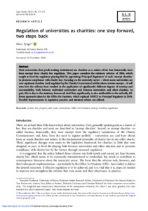 Most universities (bar profit-making institutions) are charities as a matter of law but, historically, have been exempt from charity law regulation. This paper considers the statutory reforms of 2006, which sought to level the regulatory playing field by appointing ‘Principal Regulators’ of such ‘exempt charities’ to promote compliance with charity law. Focusing on the university sector – where some universities are now registered charities (and regulated by the Charity Commission) whilst others remain exempt – it will note how the reforms have resulted in the application of significantly different degrees of scrutiny and accountability, both between individual universities and between universities and other charities. In part, this is due to the statutory framework itself but, significantly, is also attributable to the radically different approach taken by the Office for Students, which replaced HEFCE as Principal Regulator in 2018. Possible improvements in regulatory practice and statutory reform are offered.